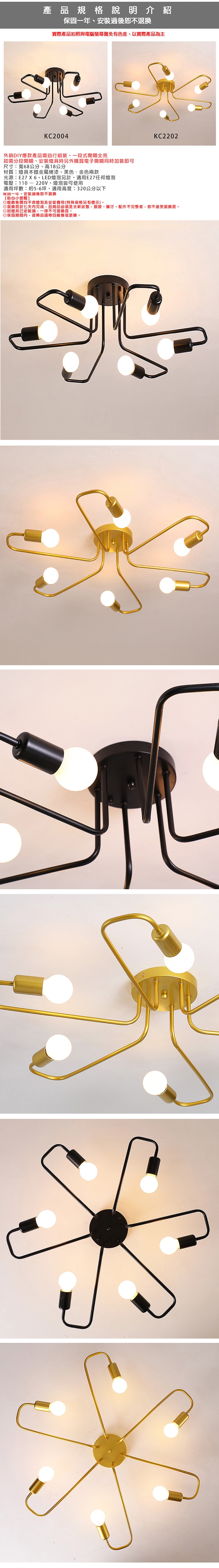光源:E27 X 6、LED燈泡另計、適用E27任何燈泡