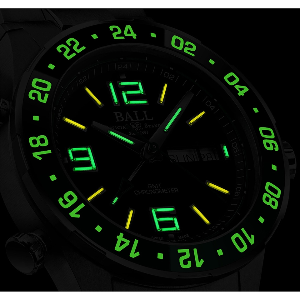 三時區顯示,配備兩顆專利GMT快速調校按鈕,8點鐘位置的按鈕帶動GMT指針逆時針移動,而10點鐘位置的按鈕則控制GMT指針順時針移動,強悍精準,更是世界首枚同時備有星期日期顯示之GMT機械腕錶。瑞士天文台認證機芯,40毫米錶徑,錶殼以高度耐磨損及耐腐蝕的鈦金屬而製。