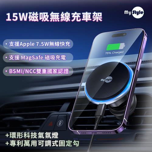 MyStyle 磁吸MagSafe無線充車架+專利萬用可調式固定勾+環形科技氣氛燈