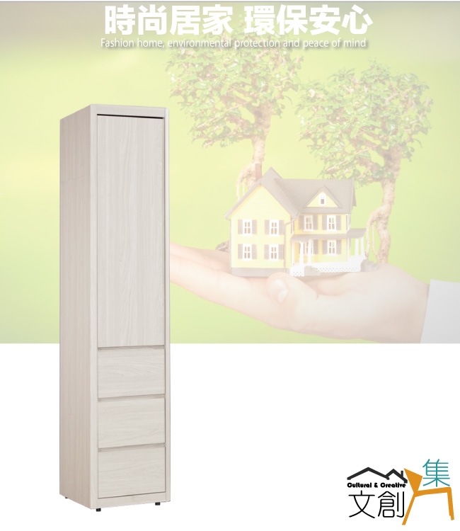 【文創集】卡摩帝1.5尺單門三抽衣櫃/收納櫃 淺橡木紋色系+現代簡約風格+安心材質製造,整體採用防蛀木心板+防潮耐磨腳座+五金滑軌結構+防夾手緩衝門片五金等安心材質製造,產品外層採用防潮耐磨噴漆處理搭配採用開門櫃+三抽屜+內開放式層格等收納空間設計,全由專人配送到家,專業安心服務,替你省下更多時間!