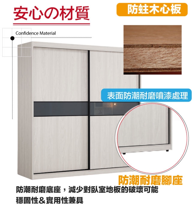 採用防蛀木心板+防潮耐磨腳座+5mm強化灰漆強化灰漆玻璃門片飾板等安心材質製造