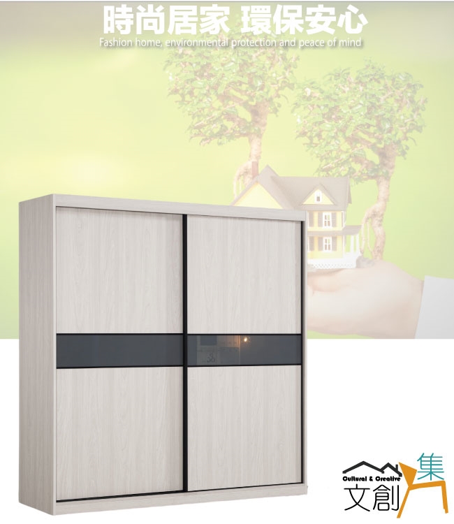 【文創集】摩克6.1尺五吊衣桿推門衣櫃/收納櫃 淺橡木紋色系+現代簡約風格+安心材質製造,整體採用防蛀木心板+防潮耐磨腳座+5mm強化灰漆強化灰漆玻璃門片飾板等安心材質製造,產品外層採用防潮耐磨噴漆處理搭配採用推門櫃+吊衣桿+內開放層格等收納空間設計,全由專人配送到家,專業安心服務,替你省下更多時間!
