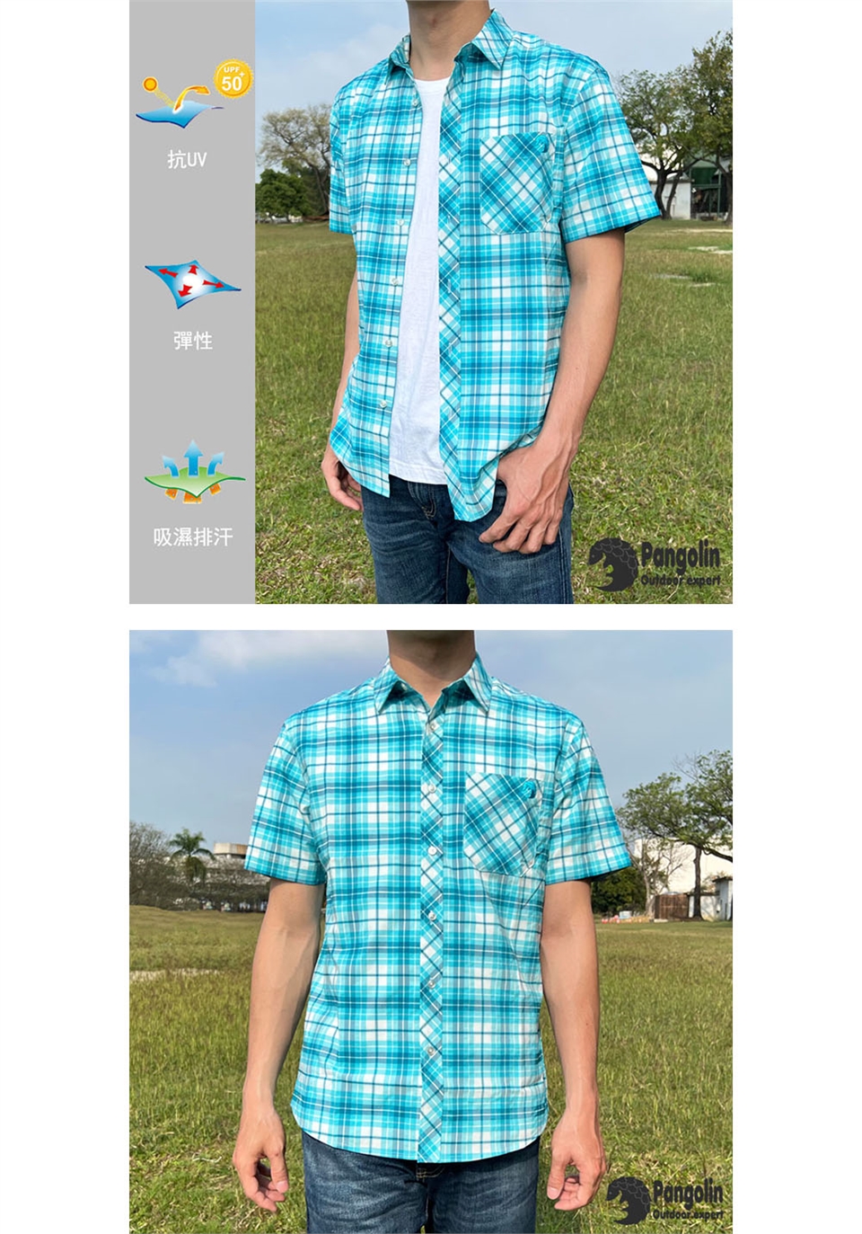 品名:彈性格紋短袖襯衫
