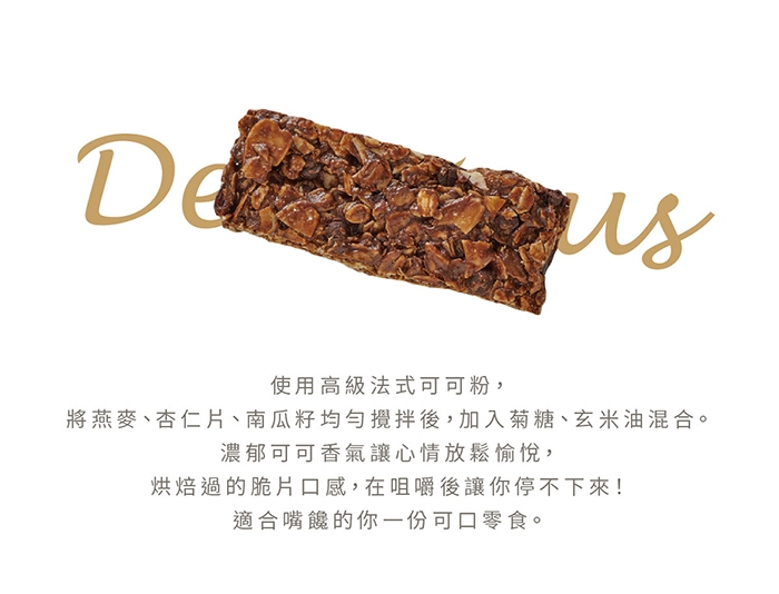 法式可可口味,搭配燕麥酥脆口感,少女心爆炸的甜蜜滋味,可可濃醇不膩,下午茶必備!