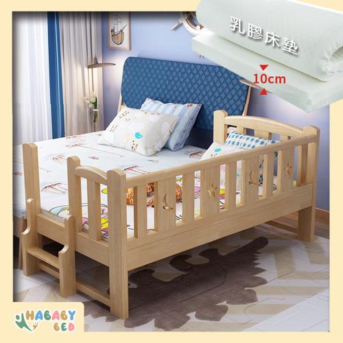 【HABABY 環安家居】無毒家具製造商 北歐星月伴睡兒童床-加大單人/長196寬112高40 + 10公分厚乳膠床墊-原木版
