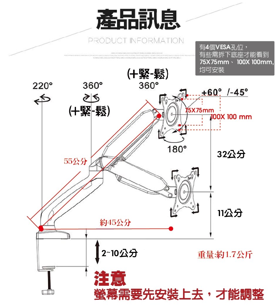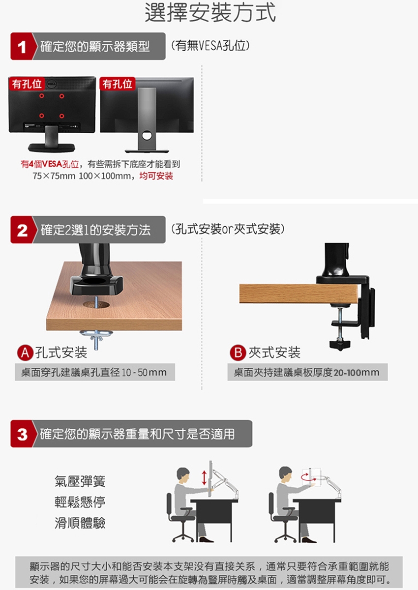 ■兩種安裝方式:孔式安裝、夾式安裝(2種零件零件包都有含)