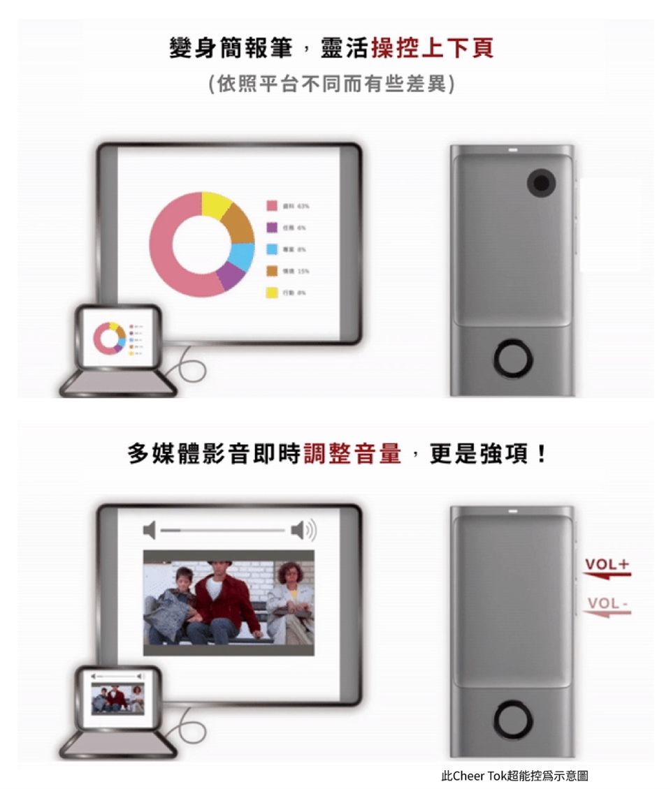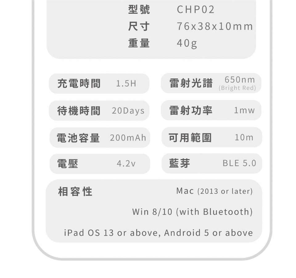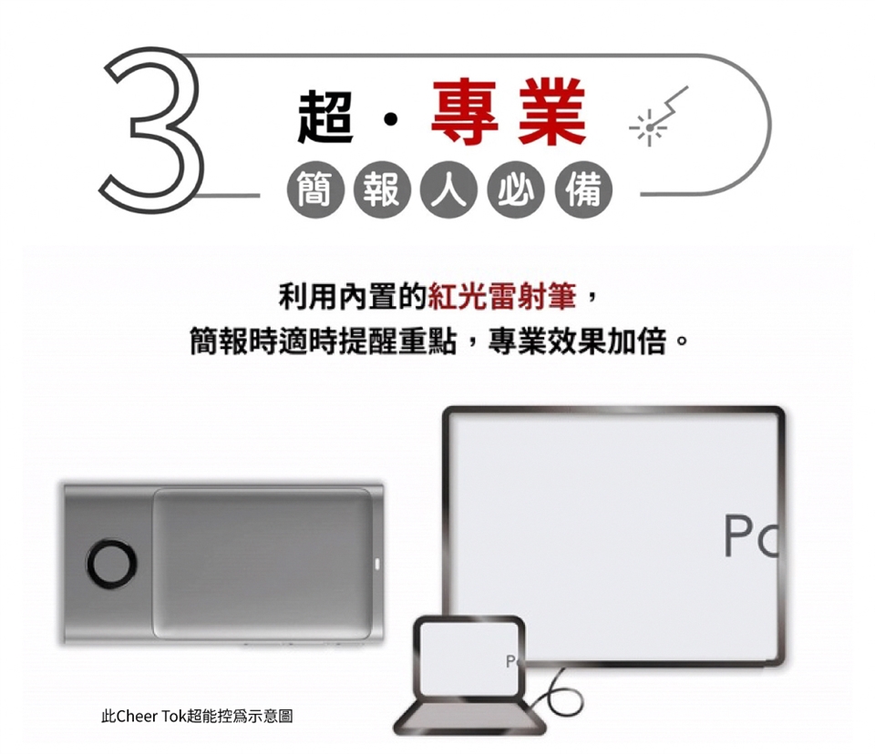 - 一機多用,集結滑鼠+觸控板+簡報筆功能
