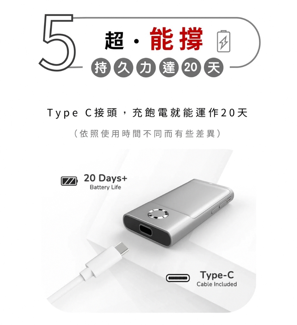 - Type C充電可使用20天