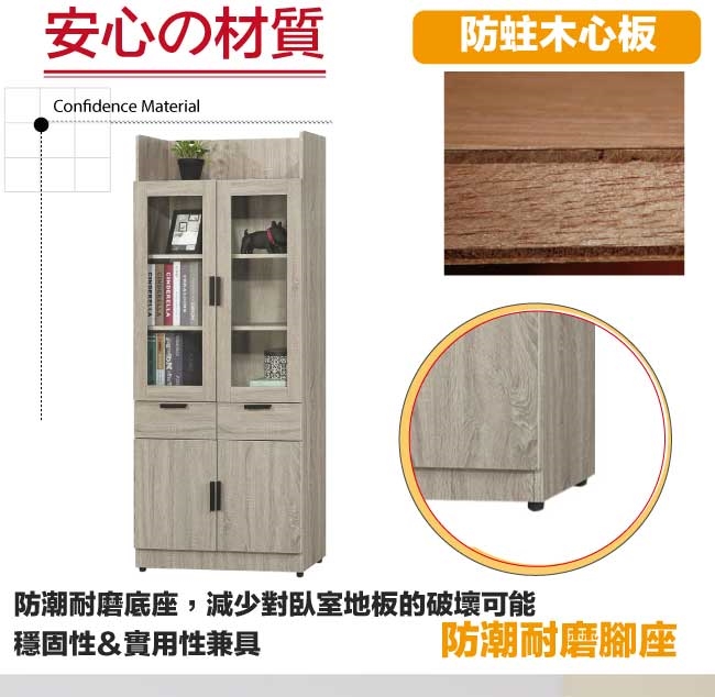 【文創集】泰雷2.6尺四門二抽高書櫃  橡木紋色系+現代簡約風格+安心材質製造,整體採用防蛀木心板+防潮耐磨腳座+五金滑軌結構+防夾手緩衝門片五金等安心材質製造,產品外層採用防潮耐磨噴漆處理搭配採用開門櫃+二抽屜+內&外開放式層格等收納空間設計,全由專人配送到家,專業安心服務,替你省下更多時間!
