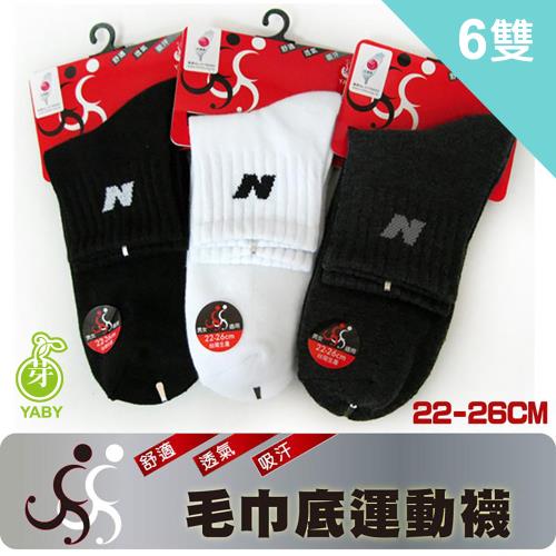 【YABY芽比】MIT台灣製N字毛巾底氣墊襪6雙組(運動襪 氣墊襪 毛巾底襪 厚襪)