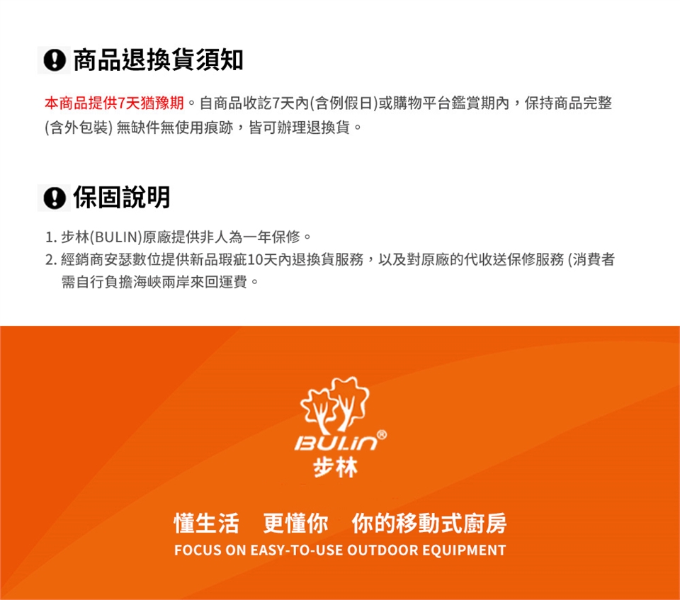 1.步林(BULIN)原廠提供非人為一年保修。