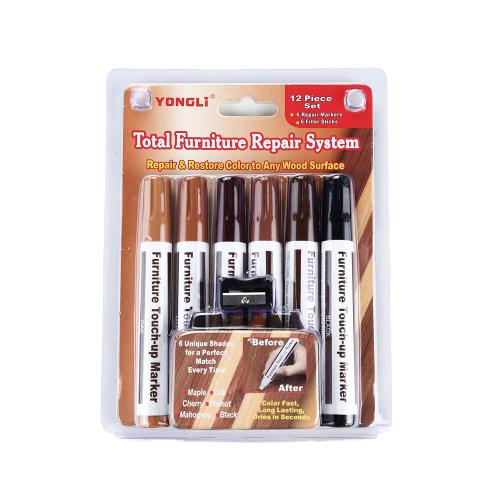 木紋地板筆 6色+6色+1卷筆刀(家具補漆筆 地板維修補色 地板筆)