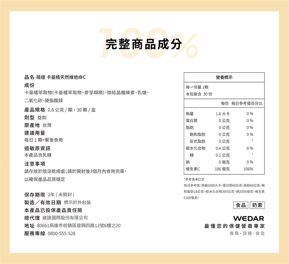 WEDAR 卡曼橘天然維他命C (30顆/盒)