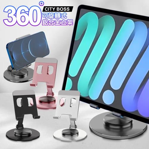 City 360°旋轉折疊手機平板支架 鋁合金 桌面型金屬懶人支架(手機/平板通用)