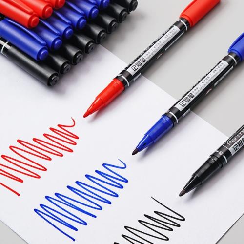 【得力】雙頭記號筆 12入組(記號筆 描線黑筆 油性筆 馬克筆 簽名筆)