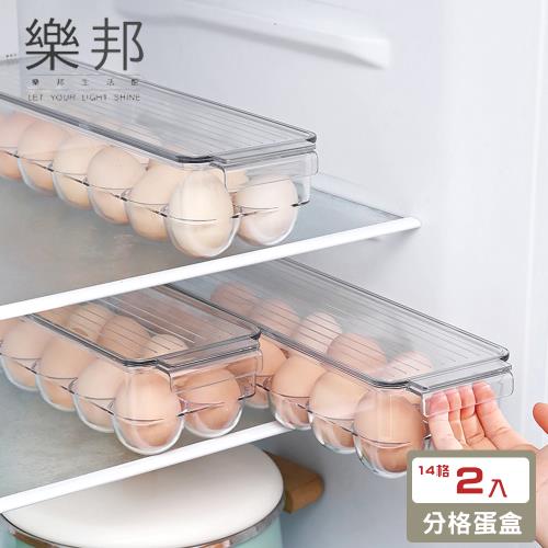 【樂邦】長型可疊附蓋14格冰箱雞蛋收納盒(2入)