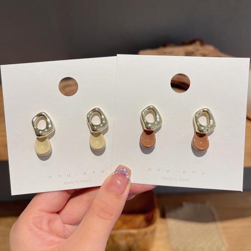 《Caroline》韓國熱賣925銀針法式輕奢風米咖色系高級感耳環74002