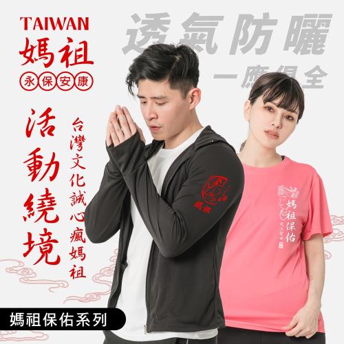 【MI MI LEO】瘋媽祖 天上聖母 進香盛事必備 媽祖遶境 防曬連帽外套 吸排素色T恤任選1款 媽祖保佑款