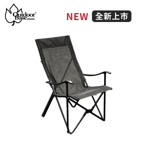 【Outdoorbase】小八高背休閒椅-黑色(戶外便攜鋁合金高背折疊椅 露營椅 月亮椅 休閒椅)