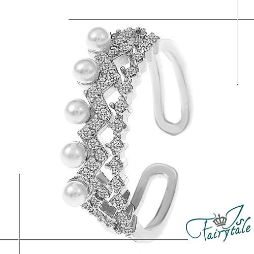 【伊飾童話】波浪珍珠*菱格水鑽彈性開口戒指/銀