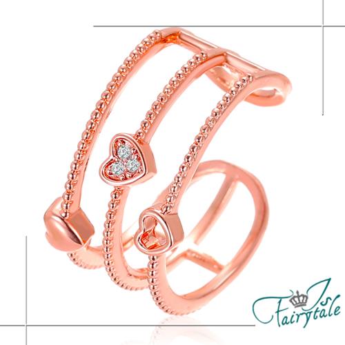 【伊飾童話】三層愛心*鏤空水鑽彈性開口戒指/玫瑰金