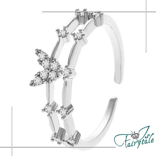 【伊飾童話】V型蝴蝶*雙層水鑽開口彈性戒指/銀