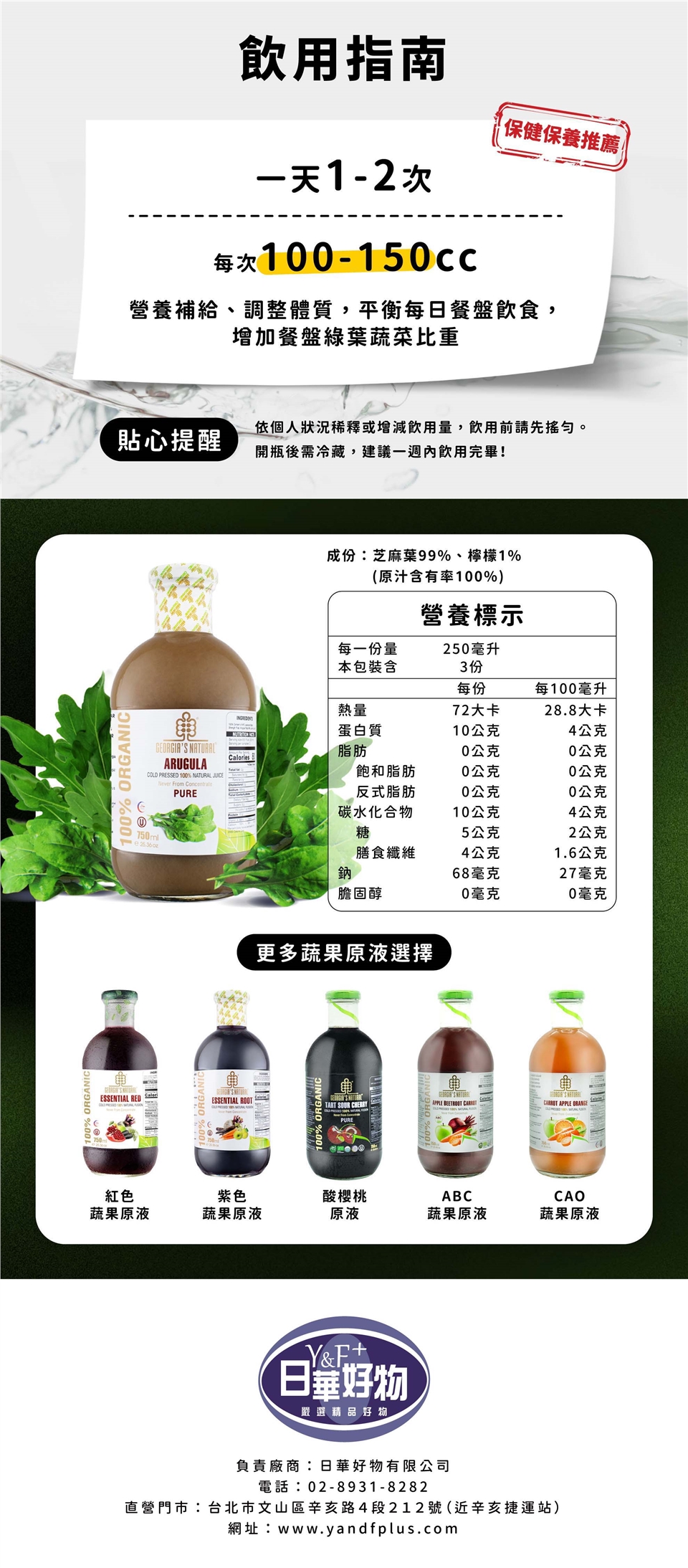 食用方法:建議每日200-250毫升,依個人狀況增減或稀釋。