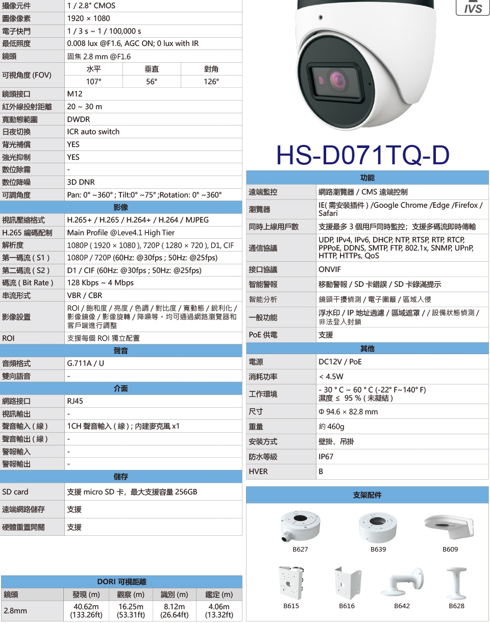 支援 3D 數位降噪 / 數位寬動態 / 強光抑制 / 背光補償