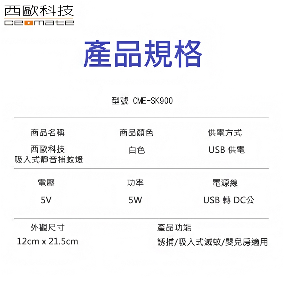 捕蚊燈 × 1 、USB充電線 × 1 、USB插頭 × 1