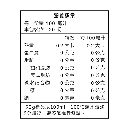 熱泡:將茶包置於杯中、注入沸水約250c.c.後浸泡2~3分鐘,取出茶包後即可飲用