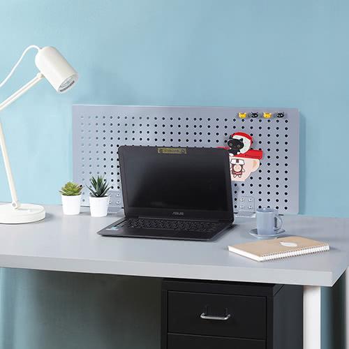 《C&B》路蓋特桌上洞洞鐵板隔屏,安裝在兩張桌子之間可以當做隔屏,安裝在桌子的後方可以當成佈告欄。您可將功課表、備忘錄、生活照、生活小札等用磁鐵吸附在本商品上,讓各種日常生活上需要叮嚀的事項都能隨時展現在眼前。