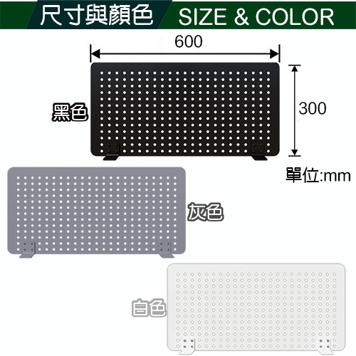 關於材質不惜成本採用整片鐵板,輔以高成本的洞洞板加工以及表面的粉體烤漆質感極佳,洞洞的設計可透氣透光又不影響隱私,第三代改良升級的L夾片,可直接站立或夾在兩張桌間使用都任由您決定,這是目前日韓流行的洞洞板風格,不古板且兼具實用與流行。