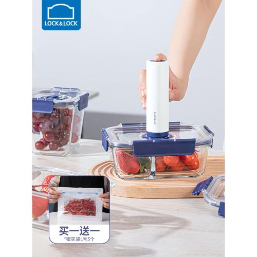 樂扣樂扣玻璃保鮮盒電動抽真空密封飯盒微波爐冰箱輔食碗抽氣食物