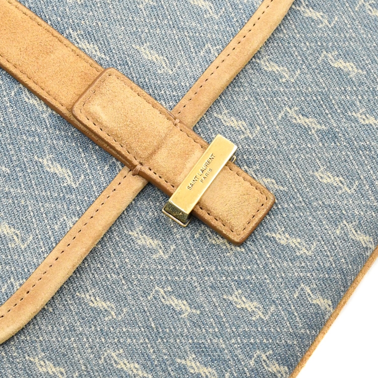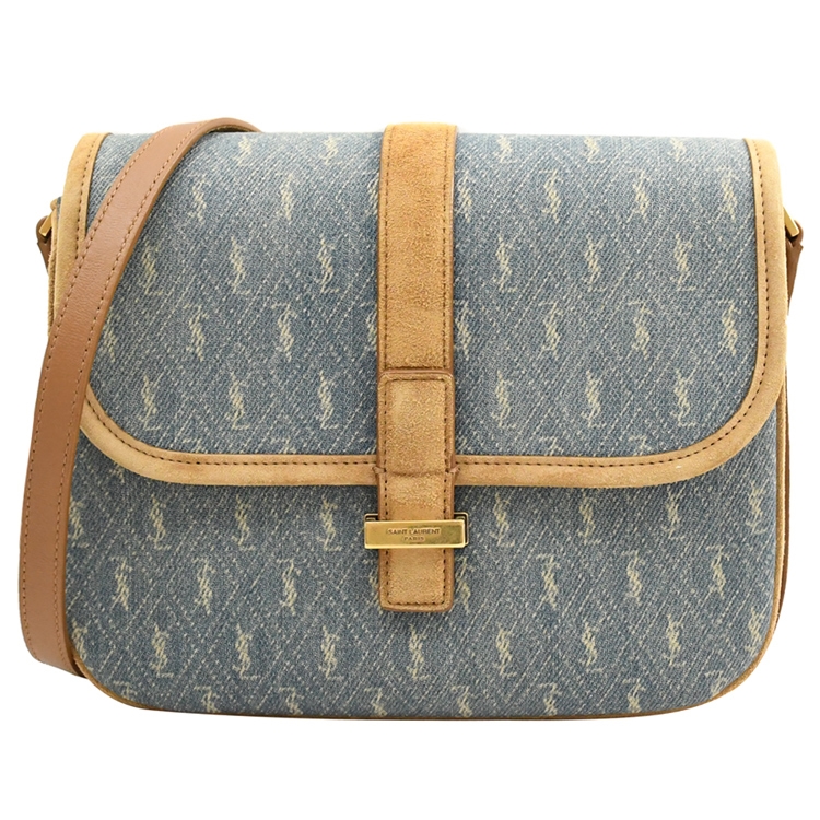 SAINT LAURENT YSL 專櫃再推熱銷斜背包,採用YSL 經典MONOGRAM滿版印花皮革搭配牛皮邊飾,內襯皮革,翻蓋穿釦式開口,內2夾層+1貼袋供收納,可放長夾及手機等隨身物品,大小適中,外出出遊皆合適,顯出低調奢華的質感,都會時尚感,搶眼又好搭風格。