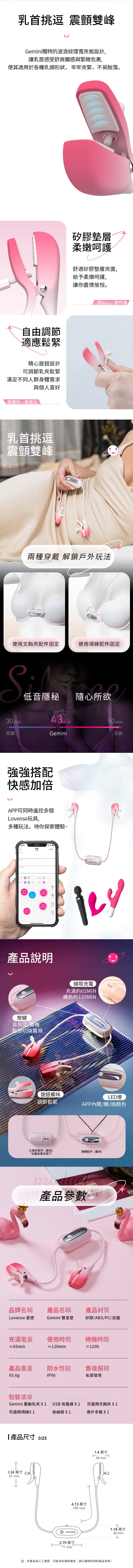商品名稱:LOVENSE Gemini|智能乳夾震動按摩器