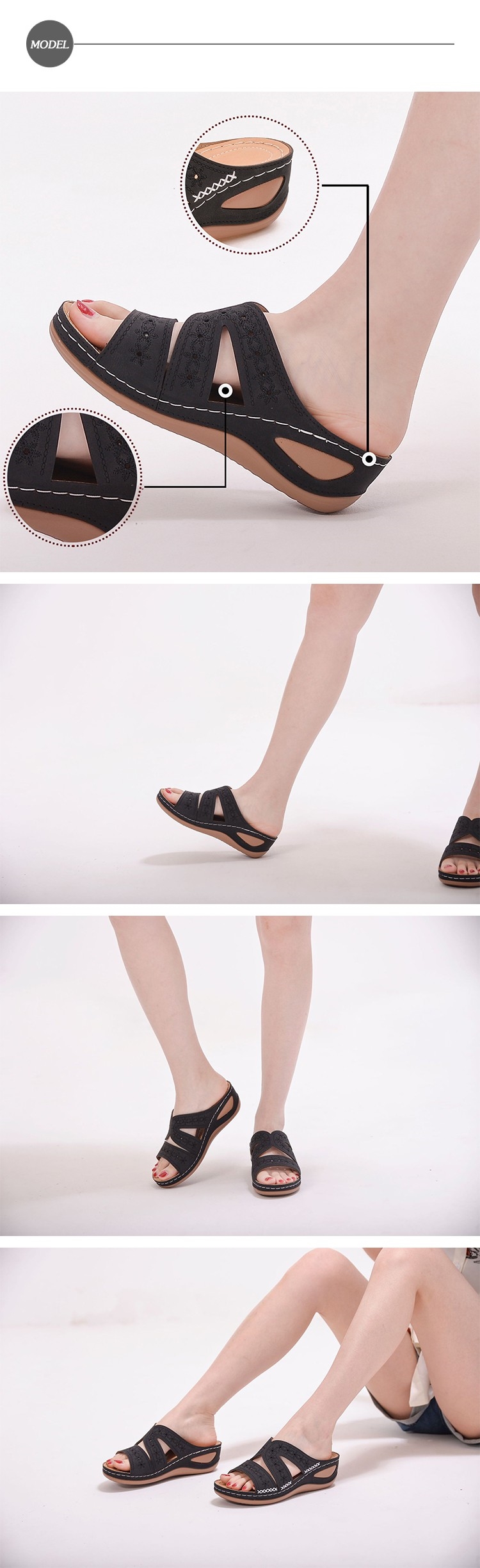 【曼步適】拖鞋 坡跟拖鞋/舒適機能輕量典雅縷空繡花氣質坡跟拖鞋 黑