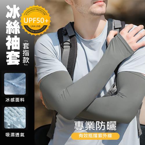 冰絲防曬袖套 套指款(1雙) 涼感 抗UV防曬 防手臂曬傷 粗手臂 運動/外送員/爬山