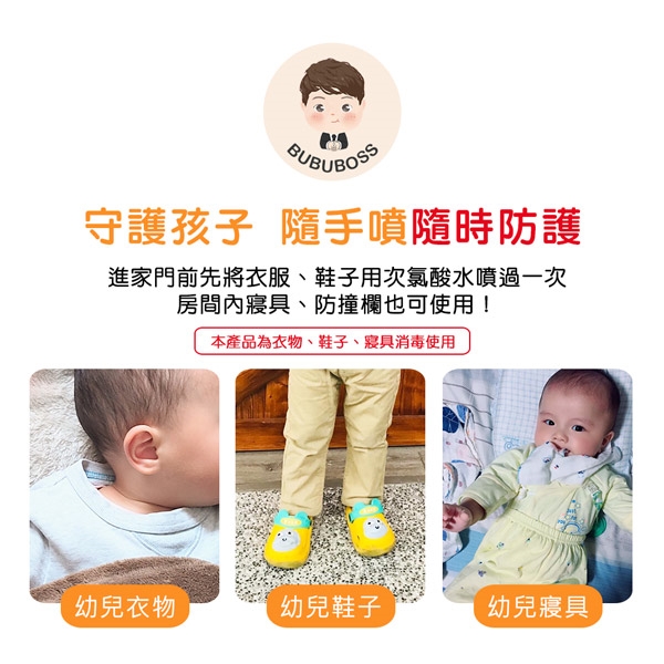 請別忘了寶寶界的法寶「BUBUBOSS次氯酸水」噴一噴哦!