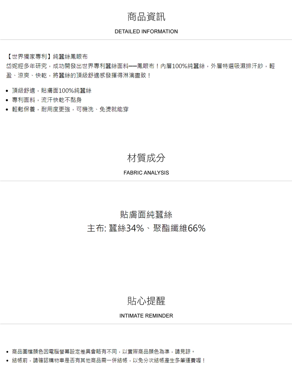 ► 請避免於太陽直射處曝曬,避免蠶絲纖維損壞。