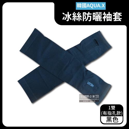 韓國AQUA.X 勁涼透氣冰絲防曬袖套x1雙 (有指孔款-黑色)