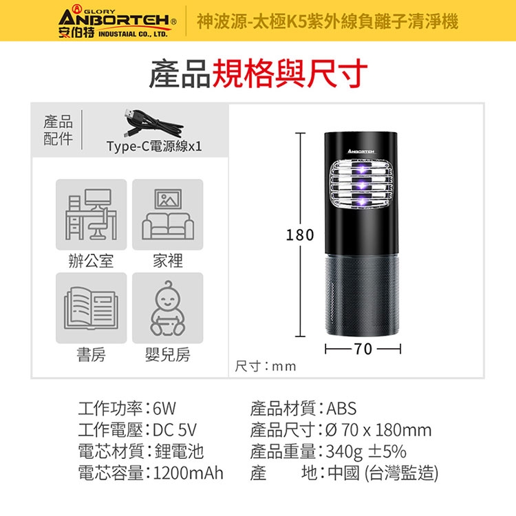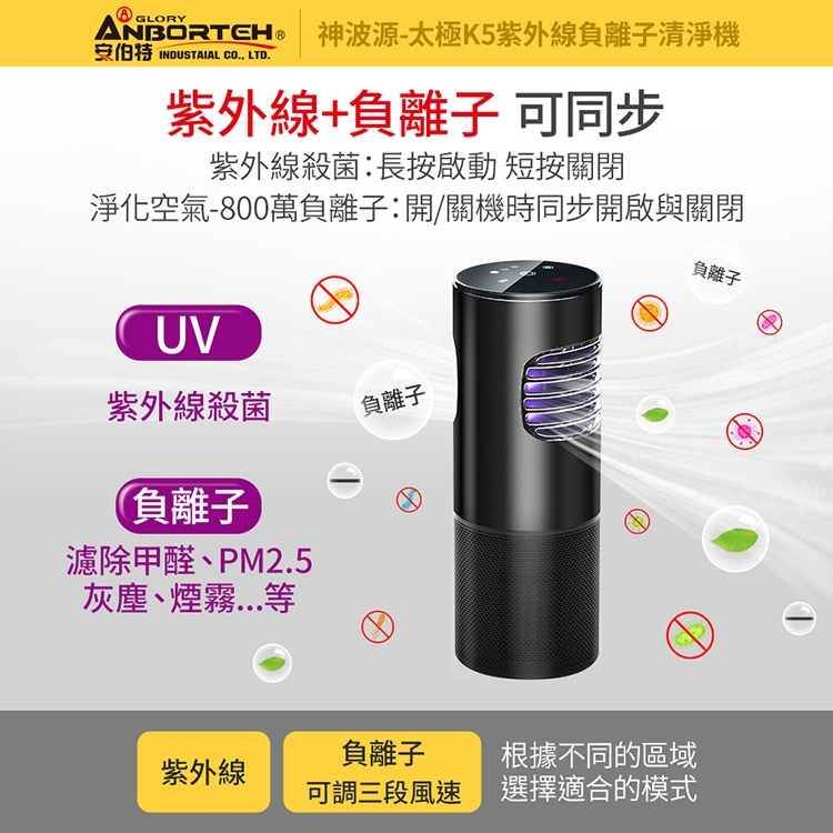 品名:【安伯特】神波源 太極K5紫外線負離子 車用空氣清淨機