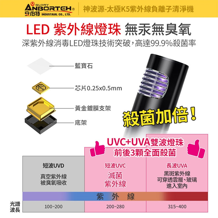 【安伯特】神波源 太極K5紫外線負離子 車用空氣清淨機