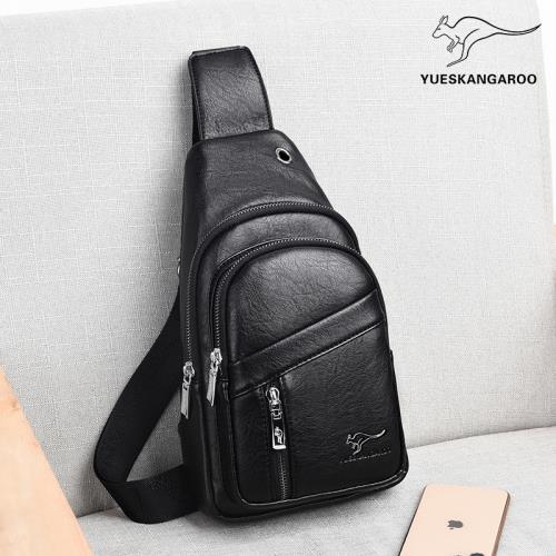 麥克袋鼠男士胸包牛皮休閑斜肩小背包男挎包軟真皮單肩包斜挎包潮