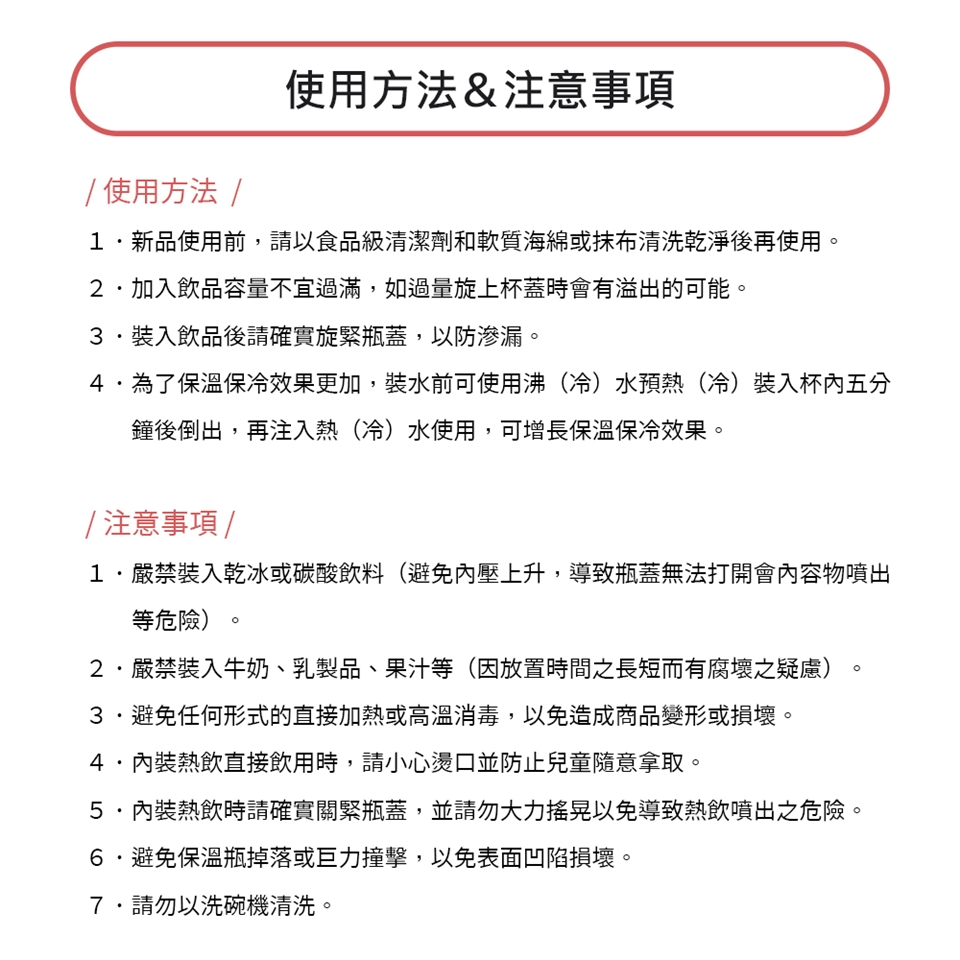 3.請勿使用洗碗機、烘碗機,以免造成商品變形或漏水。