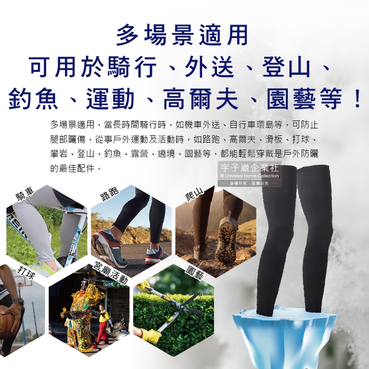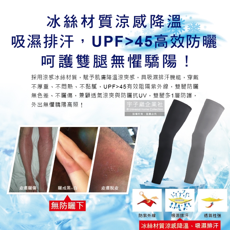 ●品名:防曬抗UV涼感冰絲透氣防滑男女素色腿套