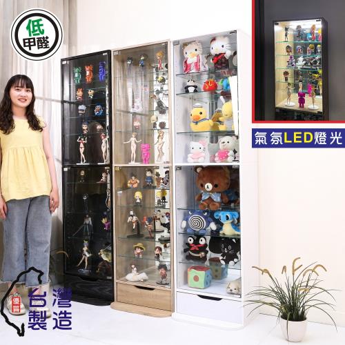 BuyJM LED燈鏡面單抽屜低甲醛十層強化玻璃高180cm展示櫃/公仔櫃/書櫃/收納櫃/玻璃櫃/GK模型櫃