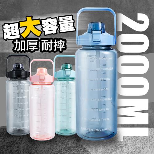 【QIDINA】2000ml超大容量手提吸管大水壺 運動水壺
