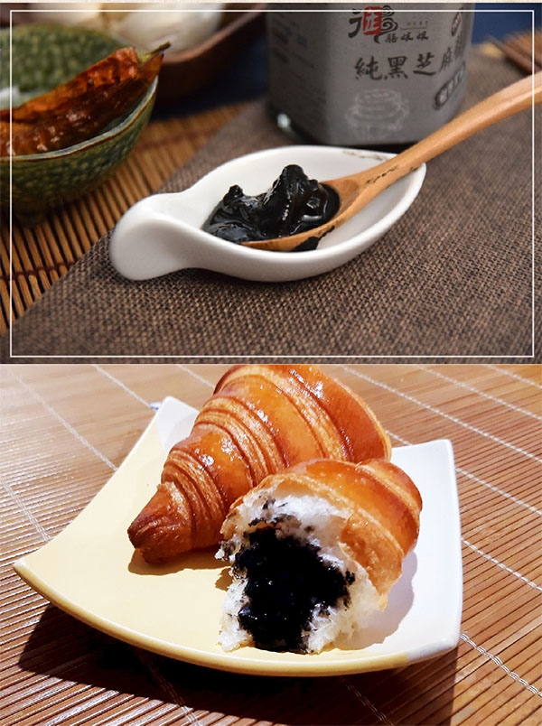 100%純黑芝麻醬:黑芝麻、黑芝麻粒