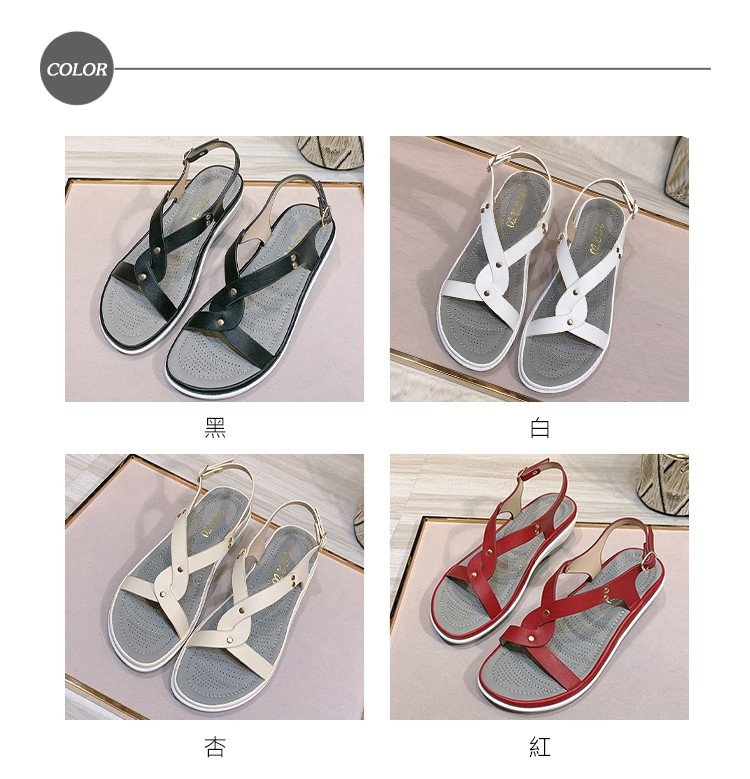 【QUEENA】涼鞋 坡跟涼鞋/極簡金屬鉚釘交叉造型百搭厚底坡跟涼鞋 黑