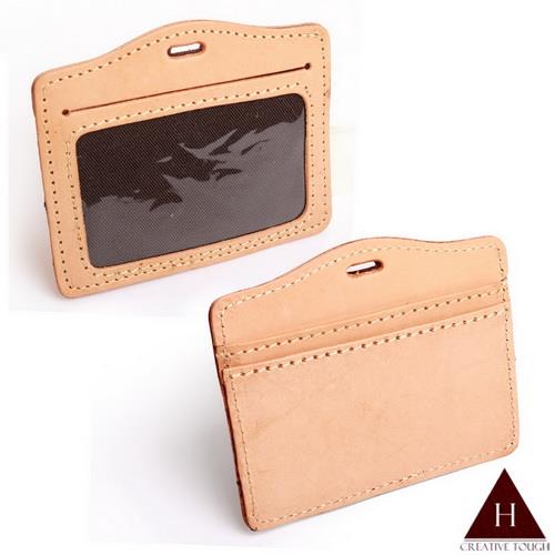 【H-CT】原皮色雙面橫式可吊掛證件悠遊卡套(IRA02-Z)